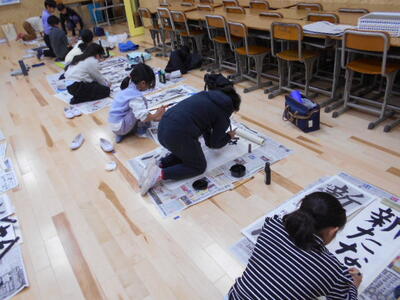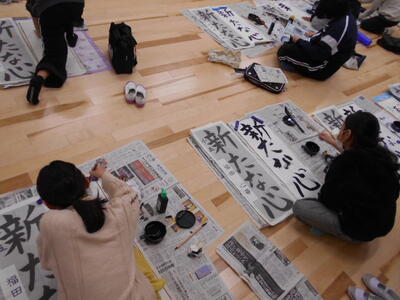 書きぞめの練習が始まりました。5年生のお題は「新たな心」です。留めとはらいの区別、そして筆圧を変えながら曲線を書くところが特に難しいです。お手本をしっかり見ながら丁寧に書き進めています。