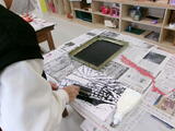 6年生の図工では、「版で広がるわたしの思い」に取り組んでいます。自分の考えや気持ちを形や色で表し、版画に込めています。刷り上がった作品から、一人ひとりの個性が溢れています。