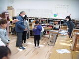 電動糸のこぎりを使った図工の学習の様子です。