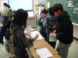 家庭科の学習で、快適に住まうための工夫について知る学習をしています。今日は温度計と照度計を使って、学校のさまざまな場所の室温と照度を測定しました。住まいを快適にするために室温や照度を調節することの大切さにつなげていきます。
