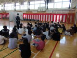 最高学年となった5年生が手本として、1年生から4年生に静かに待つ姿や、修了証を受け取り方を示しました。
