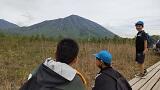 三本松園地で、男体山をバックに学年写真を撮影しました。